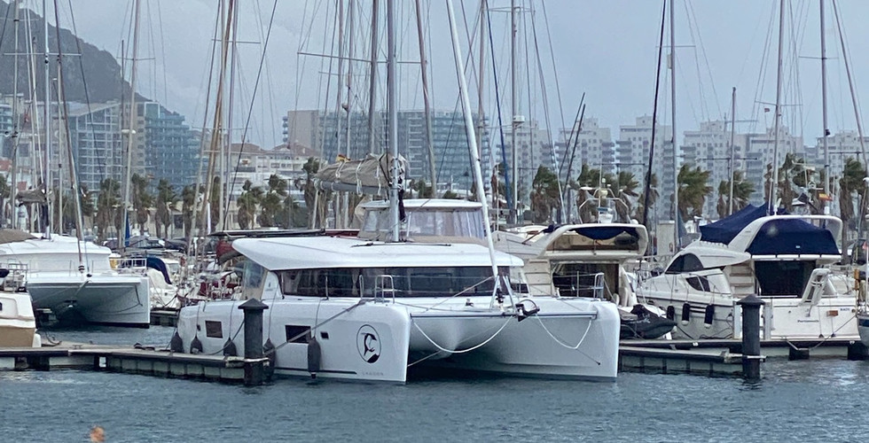 It was time to move on. It turned out that Mark and Helen were also planning to take Kismet to La Linea for the winter so would be making a similar journey to us. We both planned to head to Barbate that evening although we opted for anchoring outside the marina whereas they planned to head in and stay a few days. After waving goodbye to them we slipped the lines at 10:30am and headed out. The sail down was fairly uneventful, as in not much sailing to be had unfortunately. We managed to unfurl the jib for a few hours but apart from that it was largely motor-sailing. We arrived in Barbate at 17:10 at low tide just outside the marina. We had been warned of significant swell and the potential for fouling our anchor out there but the swell was reasonably slight and we set up the trip line just in case. We ate onboard that night and set off early the next morning in order to tackle the Straits of Gibraltar in the daylight and with the tide. The straits can be a scary prospect with significant tides and a very busy shipping lane so we had picked our weather window and tides to see us through. Apart from a bit of chop, we had 10-15kn and motor-sailed down towards Tarifa. It was a beautiful sail along the cliffs of the coastline. As we rounded the corner the Rock came into view and we could see Africa across the way. A mere 7nm from Tarifa. It was indeed a busy shipping lane but we were easily able to stay well out of it and cruised along the Spanish coastline. It was not lost on us that this would be our last sail that year and somehow, we had made it to La Linea on the exact day that we had booked the marina back in May. We were feeling pretty chuffed but the bay of Algeciras would give us one last challenge. Tankers coming into the bay and will either go to the left, to Algeciras, to the middle, the refinery, or to the right, to Gibraltar. Or they will just anchor in the bay. Some look like they are anchored but are just moving extremely slowly waiting for the pilot boat to come out to them. As we came into the bay the wind picked up to 30kn on the nose. We stayed to the left hand side at the start and could see on the chart, a cardinal marker and an AIS target which was an oceanographic survey point. We spotted the cardinal marker no problem but the survey point was not there. Not everything on the chart is always there in reality so, whilst we weren’t going to go straight over it weren’t too bothered about getting close to it. Turns out, it was! We suddenly received a message on our chart plotter from the survey point: ‘Rockhopper of London, you are within 500m, adjust your course!” I grabbed the binoculars to try and see what was hailing us but in the chop it was difficult. I finally spotted what looked like R2-D2’s head bobbing about in the water. Oops. We carried on dodging between tankers going this way and that. Plus yachts heading out and coming in. We had planned to head to the fuel dock in Gibraltar first to top up the tanks as it was tax free. Then go back across into Spain to the marina. My nerves started kicking in thinking, brilliant, 30kn winds and having to tie up to a fuel dock! Let alone the marina! We motored through anchored tankers towards the small gap between Marina Bay and the Gibraltar airport runway, we finally spotted the fuel dock. To our relief the wind dropped to about 8 knots and Carl spun her round and neatly edged her to the dock. We topped her up at 70p a litre. Magic! Keen to get her in and settled we set off shortly afterwards round the runway (actually possibly through the no sail zone at the end of the runway - thank goodness nothing was coming in our going out!). The marina staff told us to tie up to their reception/fuel dock. Out of the shelter of the Rock the wind had picked up again and there was also another catamaran tied up there. They had said if there was no room to pick a spot so we saw an empty pontoon across the way and opted for that. The wind blew us onto it but Carl had kept her parallel to the dock and I lept off and tied her on to it as quickly as I could. The fenders got a squidge but all was good. The marina was huge and the marina reception would have taken 25mins to walk round to from where we were so Carl got the dinghy down and went over to the fuel dock with our paperwork. I sat there on the boat listening to the radio of several boats coming in to the marina. Firstly there was Firebird who was told to wait outside. Maybe they were getting a bit of a queue on the dock. Then little Agnob who we had spotted on AIS all the way down (largely cos there was a nob in the name…). They were told to go onto the fuel dock too but replied that there was a dinghy in the way so couldn’t. Blush, that was us. They came over to our pontoon and the least I could do was help them with their lines. Firebird called again. Again told to wait. I thought that was a bit unfair as Agnob had just come in. I later learned from Carl that Mark and Helen had come in too and were on the fuel dock. They had decided to take advantage of the favourable winds too and had not stayed in Barbate. After few moments Firebird was allowed to come in. I could now see why it was told to wait. It was 67m long. As it came round in to the marina, not only did it block the sun but also thankfully the 25kn that was pushing us onto the pontoon. Carl came back to the boat with the marina info and the berth number that we were supposed to go onto. Turns out it was not far from us and so as the dinghy was in the water he did a bit of a recce to suss it out. When he got back he said it was a horseshoe pontoon and that we would be parking it in the 24kn crosswinds. We gathered together our knowledge from the past few months and put fenders on both sides, lines on both sides and expected to end up blown onto the leeward side. All happened as expected and we came in to our home with some help from an American guy on a beautiful Amel 50 yacht next to us to grab our lines.