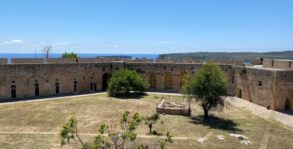 In the end we opted for a bit more space around us so positioned ourselves a bit further out. There were larger sandy patches away from the castle too. The swell was fairly manageable. We dropped the hook at 12pm, and once settled, took the dinghy into town for a wander. It was a charming little town so we chose to stay a few days and tackle the castle and its grounds the following day. We were more than enamoured by the half litre carafes of wine for €4!