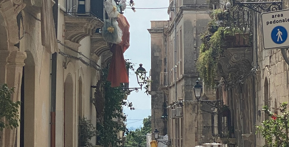 We had a lovely walk along the promenade, admiring the architecture from below and then, as the sun was starting to set, we made our way through the castle walls and up into the city. Strictly speaking we were in Ortigia, not Syracuse on the main island. We found a fantastic row of little bars and restaurants along Lungomare Alfeo, a raised terrace overlooking the bay where Rockhopper was anchored, and watched the sun set with a glass of Aperol Spritz in hand. Bellisimo!